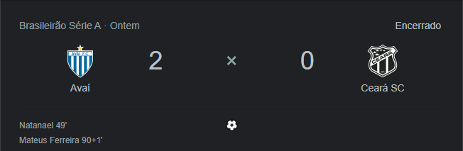 23:40: Depois de um espetáculo do Fortaleza, 6x0 contra o Bragantino e hoje o Ceará perdeu de 2x0 pro Avaí, ou seja, confirmado que foi rebaixado pra série b no próximo ano, eu vou tentar editar logo os dois vídeos pendentes e voltando a falar sobre a jogadora de tênis leitora de fóruns de pessoas que não importam um trisco pra ela, em qual orfanato ela arranjou um mlk de 15 anos com nome de fumaça/fumar?