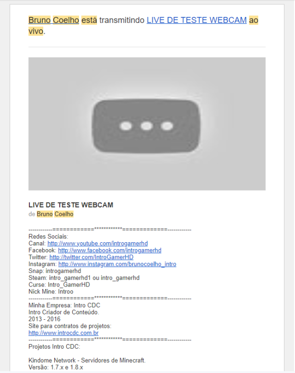 - Não se sabe muito desta live, apenas da existência dela a partir de uma notificação via e-mail.
